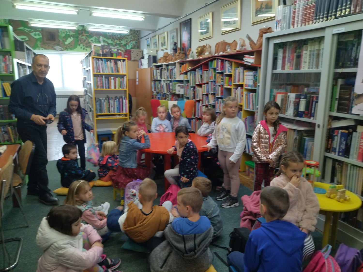 S obzirom da se od 15. listopada do 15. studenog 2022. godine održava Mjesec hrvatske knjige s djecom smo posjetili Gradsku knjižnicu i čitaonicu Mladen Kerstner. Djeca su sa zanimanjem promatrala i listala knjige i slikovnice te pozorno slušala na koji način se mogu učlaniti u knjižnicu i posuđivati knjige sa svojim roditeljima. Ovo je bila prilika da se i Vrtić učlani u knjižnicu kako bi odgojiteljice mogle za djecu svaki mjesec posuditi nekoliko knjiga ili slikovnica za čitanje.